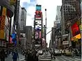 تایمز اسکوئر یک تقاطع شلوغ از هنر و تجارت، همراه با تابلوهای تبلیغاتی فراوان است که برای جلب توجه بینندگان با هم رقابت میکنند. چند نمونهٔ معروف: