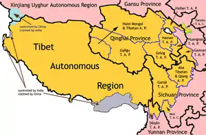 | ناحیه مشخص شده تبتینشین توسط جمهوری خلق چین | |||||||||
