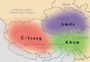 | تبت تاریخی که گروههای تبعیدی تبتی مدعی آن هستند. | |||||||||