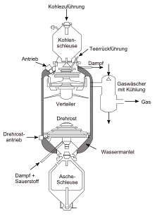 تبخیر شدن زغال سنگ فرایند تولید گاز سنتز است - مخلوطی متشکل از مونوکسید کربن (CO)، هیدروژن (H2)، دیاکسید کربن (CO2)، گاز طبیعی (CH4) و بخار آب (H2O) - از ذغال سنگ و آب، هوا و / یا اکسیژن.