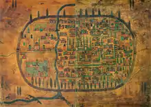 ... شهری بسیار بزرگ که با باغهای زیبا و دلانگیز محصور شدهاست. موقعیت قرار گرفتن این شهر بسیار عالی است بهطوریکه کالاها از همه نقاط به این شهر آورده میشوند. بازرگانان لاتین و به ویژه ژنویها به این شهر میروند تا کالاهایی که از سایر نقاط به این شهر آورده شدهاند را خریداری نمایند.[63]