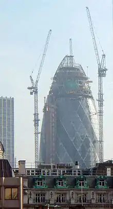 پس از منتفی شدن ساخت برج میلنیوم، ساختمان کنونی، توسط نورمن فاستر و مهندسان آروپ طراحی شده و کار ساخت آن نیز توسط اسکانسکا در سالهای ۲۰۰۱ تا ۲۰۰۳ انجام شد.