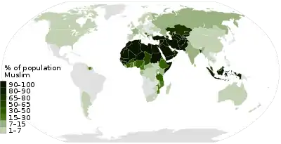 درصد مسلمانان در کشورهای جهان (مرکز تحقیقات پیو، ۲۰۱۴).