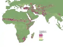 این بیماری بیشتر در مناطق صحرایی آفریقا، اروپای شرقی، خاورمیانه (عراق، افغانستان، پاکستان، ایران)، هند و غرب چین مشاهده میشود. شیوع بالایی از بیماری در بین دامداران،دامپزشکان و کارکنان دامپزشکی،سلاخان ،قصابان و کارکنان کشتارگاه ،پزشکان ،پرستاران و کارکنان بیمارستانها، کشاورزان و اشخاصی که با دام سر و کار دارند مشاهده میشود.[7]