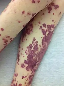 - دوره نقاهت: با کمرنگ شدن ضایعههای پوستی از روز دهم، به تدریج روند بهبودی آغاز میشود. بیشتر بیماران در هفتههای سوم تا ششم بعد از شروع بیماری وقتی شاخصهای خونی و آزمایش ادرار آنان طبیعی شد از بیمارستان مرخص میشوند. مشخصه دوره نقاهت، طولانی بودن آن به همراه ضعف است که ممکن است برای یک ماه یا بیشتر باقی بماند. گاهی موهای بدن کامل میریزند که البته پس از ۴ تا ۵ ماه ترمیم میشود. بهبودی معمولاً بدون عارضه است. اگرچه التهاب عصبی یک یا چند عصب ممکن است برای چندین ماه باقی بماند.