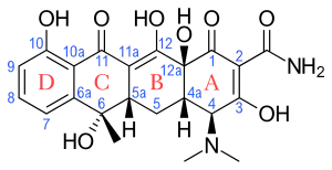 - مشارکتکنندگان ویکیپدیا. «Tetracycline antibiotics». در دانشنامهٔ ویکیپدیای انگلیسی، بازبینیشده در ۸ سپتامبر ۲۰۱۶.