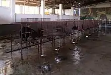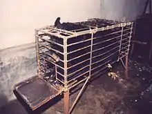یک خرسِ صفرازا که برای تولیدِ صفرا در شرایطِ خُردکننده قرار داده شدهاست.