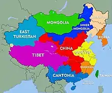 - مشارکتکنندگان ویکیپدیا. «Secession in China». در دانشنامهٔ ویکیپدیای انگلیسی.