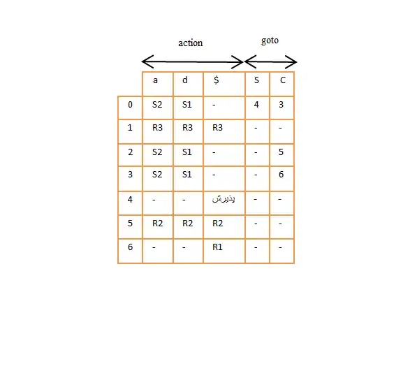 پس از Reduce آنها، به S برسیم. در این مثال برای تشخیص (انتظار S)، بر اساس قاعدهٔ S → CC،انتظار دیدن C را به شکل S → .CC داریم و برای تشخیص