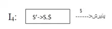و اگر در S,I0 تشخیص داده شود میتوان به وضعیت I4 انتقال یافت (goto 4) ، ودر حالت I4 با دیدن $ عمل پذیرش صورت میگیرد: