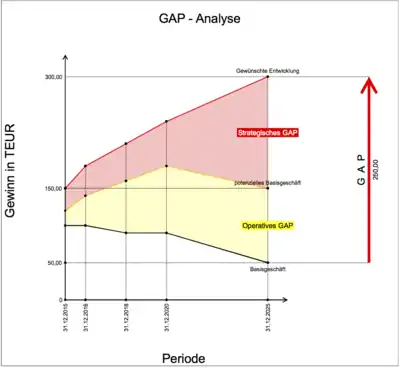 - مشارکتکنندگان ویکیپدیا. «Gap analysis». در دانشنامهٔ ویکیپدیای انگلیسی، بازبینیشده در ۹ اکتبر ۲۰۱۷.