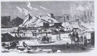طرحی از نمای جنوبی تختجمشید، توسط ژان شاردن (۱۷۱۱)