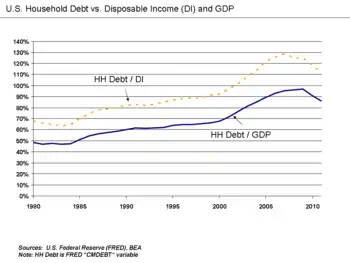 این بحران عموماً با کاهش قیمت بازار داراییهایی که قبلاً «بیش از حد فروخته شده» بوده و به بحران مالی اشاره دارد که ناشی از سقوط قیمتها است.[13] این میتواند منجر به سلب مالکیت گسترده یا ورشکستگی برای افرادی شود که اواخر به بازار آمدند، زیرا قیمت داراییهای قبلی دارای تورم است و بهطور کلی بسیار ناگهانی افت میکند. در مقابل، یک بحران نقدینگی هنگامی ایجاد میشود که یک تجارت غیرقابل تصور، موقتاً نتواند به منابع مالی پول برای توسعه تجارت خود یا صاف کردن جریانهای نقدی خود دسترسی پیدا کند. در این حالت، دسترسی به خطوط اعتباری اضافی میتواند به تجارت اجازه دهد تا راه خود را از طریق این روش پیموده و از ادامه پرداخت آن و اطمینان حاصل کند. شناختن اینکه آیا مشاغل مضطرب دچار بحران پرداخت بدهی یا بحران موقت نقدینگی هستند، اغلب در بحران دشوار است.