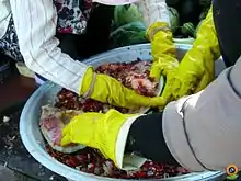- در این حالت آنها را برش داده و تخمهها را از خود میوه جدا میکنند که کاری دشوار است.