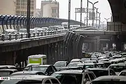 ترافیک و آلودگی آب و هوای تهران دو معضل بزرگ این شهر هستند که در ارتباط تنگاتنگ با هم میباشند. ترافیک که سبب هدررفت سالانه میلیونها ساعت از وقت شهروندان میشود، با آلودهسازی هوا سبب تحمیل بار جانی واقتصادی سنگین بر بدنه جامعه و دولت میشود. ریشهٔ معضل ترافیک تهران وجود انبوه خودروهای سواری در این شهر است که میرود تا خیابانهای آن را به پارکینگ بزرگی تبدیل کند. گسترش و ترغیب مردم به استفاده از وسایل حمل و نقل عمومی به ویژه مترو و ایجاد راههایی برای کاهش تقاضای سفر (مانند تقویت دولت الکترونیک) و در درجه بعدی دوطبقهسازی بزرگراهها از مهمترین راهکارهای کاهش و کنترل ترافیک تهران ذکر شدهاست.[12][13]