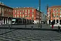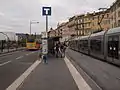 ![]() Tram crossing Place Garibaldi, where it lowers its pantograph and is powered by batteries | |