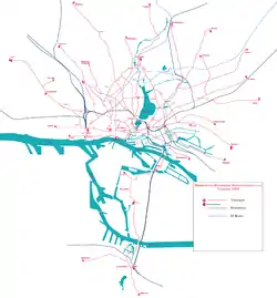 ![]() A tram of line 2 in the Rathausmarkt، ۱۹۷۵. | |||||||||||||||||||||