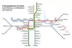 ![]() A line 2 tram at Cottbus Hauptbahnhof. | |||
