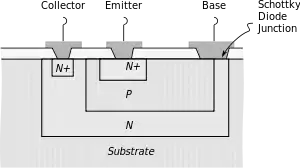 با اشباع نکردن ترانزیستورهای کلیدزنی میتوان زمان ذخیرهسازی را از بین برد و تأخیر انتشار را کاهش داد. ترانزیستورهای شاتکی از اشباع و بار بیس ذخیره شده جلوگیری میکنند.[1] یک ترانزیستور شاتکی یک دیود شاتکی را بین بیس و کلکتور ترانزیستور قرار میدهد. همانطور که ترانزیستور به اشباع نزدیک میشود، دیود شاتکی هر راهاندازی بیس اضافی را به کلکتور هدایت و منحرف میکند. (این روش جلوگیری از اشباع در مهار بیکر سال ۱۹۵۶ استفاده میشود) ترانزیستورهای حاصل که اشباع نمیشوند، ترانزیستورهای شاتکی هستند. خانوادههای منطقی شاتکی تیتیال (مانند اس و الاس) از ترانزیستورهای شاتکی در جاهای بحرانی استفاده میکنند.