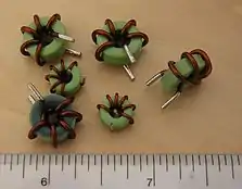 سلف کوچک فریت هسته چنبرهای (خطکش با معیار اینچ اندازهگیری میکند)
