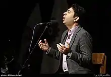 محمد معتمدی در حال خواندن در یادمان حسین منزوی (۲۸ شهریور ۱۳۹۶)