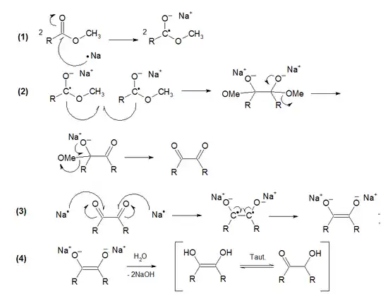 تراکم آسیلوئین یک واکنش جفت سازی کاهشی میان دو استر با استفاده از فلز سدیم به منظور تولید آلفا-هیدروکسی معروف به آسیلوئین است.[1][2][3]