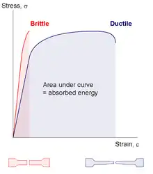 - به هنگام کشش، مواد ترد انرژی بسیار کمی جذب میکنند ولی مواد چکشخوار انرژی زیادی را، معادل با سطح زیر نمودارِ تنش-کرنش، به هنگام شکستن جذب میکنند.