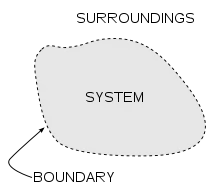 یکی از مفاهیم اصلی در ترمودینامیک سیستم میباشد. سیستم ناحیهای از فضا است که برای بررسی انتخاب میشود. به هر آنچه که خارج از این سیستم وجود دارد محیط (ترمودینامیک) گفته میشود. سیستم به وسیلهٔ مرزی از محیط جدا میشود. این مرز میتواند مرزی واقعی یا مجازی باشد. سیستم میتواند از طریق این مرز انرژی و جرم را مبادله نماید. پس بهطور خلاصه داریم:
