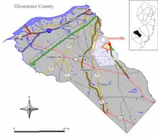 ![]() Map of Turnersville CDP in Gloucester County. Inset: location of Gloucester County in New Jersey. | |