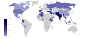 در فهرست کشورهایی که بیشترین آسیب را از تروریسم دیدهاند، ایران پس از بریتانیا و پیش از یونان و ایالات متحده آمریکا در رده ۲۸ام قرار دارد. ایران همچنین جزو ۱۳ کشوری است که بنابراین گزارش در کنار کشورهایی مثل مکزیک و اسرائیل در معرض خطر افزایش حملات تروریستی است.[9]