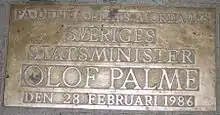 در روز جمعه، ۲۸ فوریه ۱۹۸۶، ساعت ۲۳:۲۱ CET (۲۲:۲۱ UTC)، اولاف پالمه، نخستوزیر سوئد، هنگامی که با همسرش لیسبت پالمه در خیابان مرکزی استکهلم از خانه سینما به خانه میرفت، در خیابان اسویوژن با یک گلوله مجروح شد. لیسبت پالمه در اثر شلیک دوم کمی زخمی شد. این زوج بادیگارد (محافظ شخصی) نداشتند.