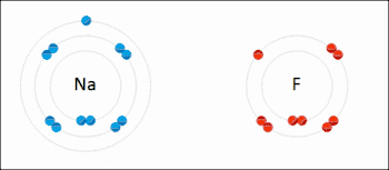 حال دو اتم با تبادل الکترون به حال پایدار رسیدند و هر یک دارای بار مخالف شدهاند و به واسطه نیروی الکترواستاتیک به یکدیگر متصل و تشکیل پیوند یونی را میدهند.[21]