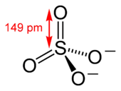 گونه دیگری از کاتیونها و آنیونها وجود دارند که خود از چند اتم تشکیل شدهاند و به آنها به اصطلاح یون چنداتمی[persian-alpha 10] گفته میشود. بهعنوان مثال، یون سولفات یک آنیون چند اتمی است که در آن یک اتم گوگرد با ۴ اتم اکسیژن بهوسیله پیوند کووالانسی و به شکل هرم چهاروجهی با یکدیگر پیوند دارند. کل این ساختار دارای بار -۲ است. به شکل مشابه کاتیونهای چند اتمی با بار مثبت نیز وجود دارند؛ مثلاً آمونیوم یک کاتیون است که در آن یک اتم نیتروژن با چهار اتم هیدروژن بهوسیله پیوند کووالانسی و به شکل هرم چهاروجهی در کنار هم قرار گرفتهاند.[54]