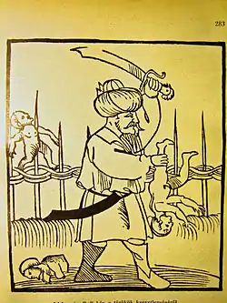 داستان ترک و گرگ نیز یک تصویر منفی از ترکها در اروپا ترسیم کرد. ادعا میشد که ترک-گرگ موجودی آدمخوار است که نیمی گرگ و نیمی انسان است با سر و دمی مانند گرگ. نیروی نظامی و بیرحمی ظالمانه از ویژگیهایی بود که در همه این ادعاها مطرح میشد.[10]