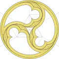 تریسکلیون سلتیک شامل سه سر پرنده با حلقهای در مرکز