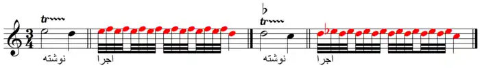 - کمال پورتراب، مصطفی (۱۳۸۵). تئوری موسیقی. تهران: چشمه. صص. صفحه ۱۶۳٬۱۶۲٬۱۶۱. شابک ۹۶۴-۶۱۹۴-۲۷-۳.