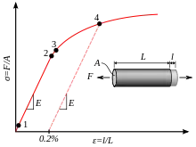 نقطه ای در نمودار تنش-کرنش که درجه نمودار تغییر و تغییر شکل پلاستیک رخ می دهد.[15]