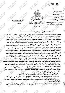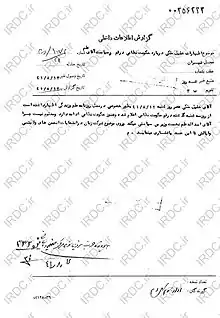 - آرشیو مرکز اسناد انقلاب اسلامی، شماره بازیابی ۹۸۱ ص ۱