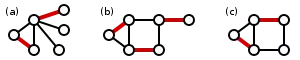 تصاویر زیر، تطابق ماکسیمال را برای ۳ گراف نشان میدهد (گراف تطابق بیشینه با رنگ قرمز نشان داده شدهاست).