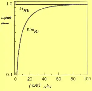 از نمونههای این نوع تعادل میتوان ژنراتور سیستم تلاشی 81Rb-81mKr را مثال زد.