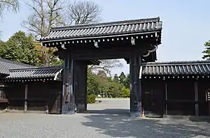 دروازه ساکایماچی، در روز ۳۰ سپتامبر ۱۸۶۳، ۹ دروازه کاخ امپراتوری کیوتو بر روی شخصیتهای جناح تندرو طرفدار اخراج بیگانگان از ژاپن بسته شد.