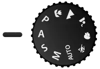 دکمهٔ انتخاب حالت تقدم دیافراگم در دوربینهای شرکت نیکون.برای انتخاب حالت تقدم دیافراگم، باید زبانه بر روی A قرار گیرد.
