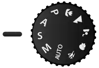 دکمهٔ انتخاب حالت تقدم شاتر در دوربینهای شرکت نیکون. برای انتخاب حالت تقدم شاتر، باید زبانه بر روی S قرار گیرد.