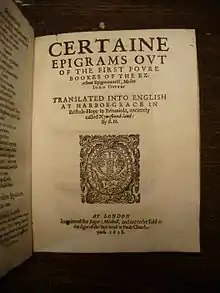 - مشارکتکنندگان ویکیپدیا. «Epigram». در دانشنامهٔ ویکیپدیای انگلیسی، بازبینیشده در ۴ آوریل ۲۰۱۷.
