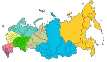 - Federal districts of Russia. (2014, February 13). In Wikipedia, The Free Encyclopedia. Retrieved 01:10, March 21, 2014, from http://en.wikipedia.org/w/index.php?title=Federal_districts_of_Russia&oldid=595291850