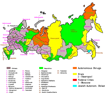 - ۳ شهر فدرال (مسکو و سن پترزبورگ و سواستوپل)