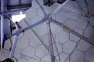 شبکه آیینههای موزاییکی این تلسکوپ در این تصویر بخوبی نمایان است.