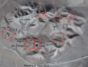 ![]() نمای تل براک از دور به همراه چند منطقه حفاری | |