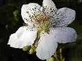 گل تمشک وحشی، منطقه خلیج، کالیفرنیا. اشاره: عنکوبتی بر روی گلبرگ پایینی