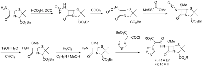 (2S,5R,6S)-6-[(Carboxy-3-thienylacetyl)amino]- 6-methoxy-3,3-dimethyl-7-oxo-4-thia-1-azabicyclo[3.2.0] heptane-2-carboxylic acid, | |
